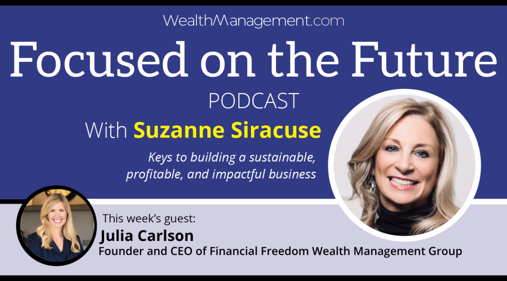 In this episode of Focused on the Future, host Suzanne Siracuse talks with Julia Carlson, founder and CEO of Financial Freedom Wealth Management Group, about creating an inclusive culture, serving clients without traditional minimums and using technology to strengthen relationships. Julia also shares insights from her new book, Let’s Get You Fired, which helps entrepreneurs step back so their companies can grow.